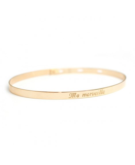 Bracelet jonc ruban en plaqué or de la marque Petits Trésors. Réglable à trois tailles, ce bracelet est personnalisable par une gravure. Retrouver tous les détails pour vous aider à commander en bas de page.