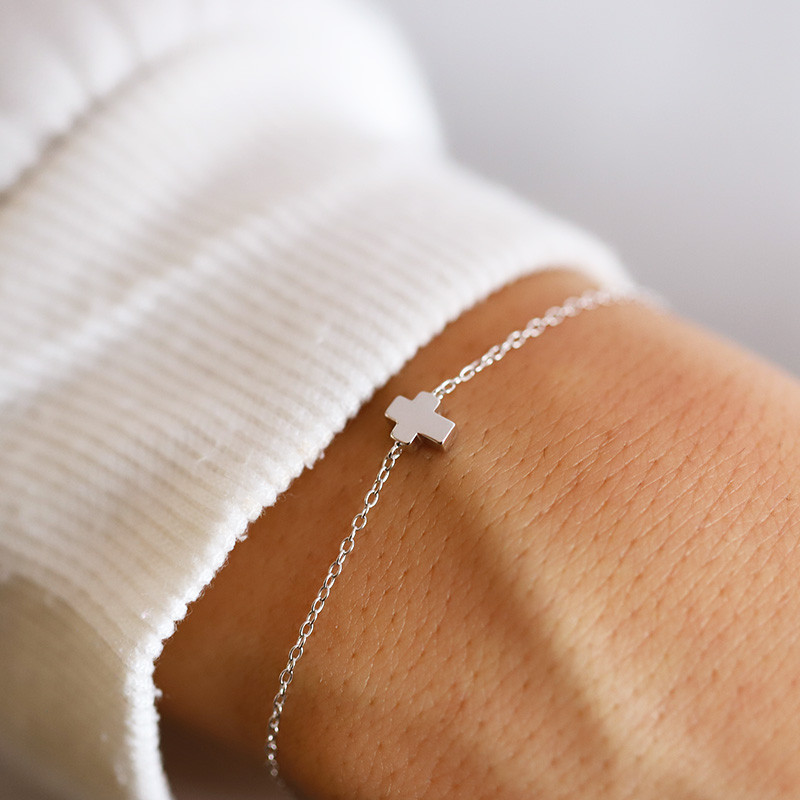 Ce bracelet chaîne en argent est une bien jolie façon de porter une croix discrètement au poignet; ce bracelet est prévu pour femme mais peu convenir pour une ado (poignet femme).