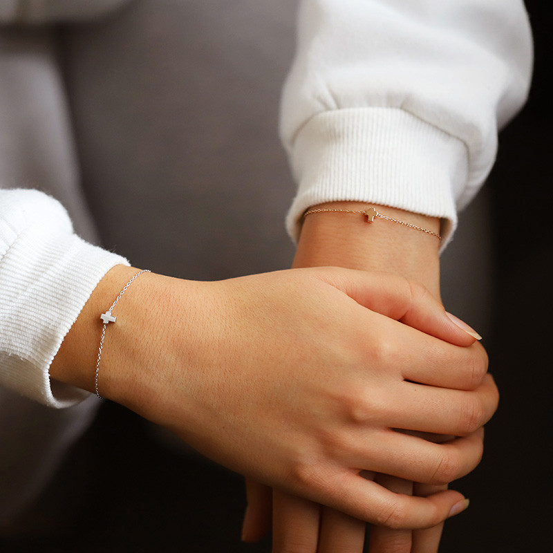 Craquez pour ce bracelet chaine et sa petite croix discrète en plaqué or rose, une couleur hyper tendance et très élégante ! Ce bracelet femme se porte seul ou avec d'autres bracelets de forme et de couleurs différentes pour jouer l'accumulation.