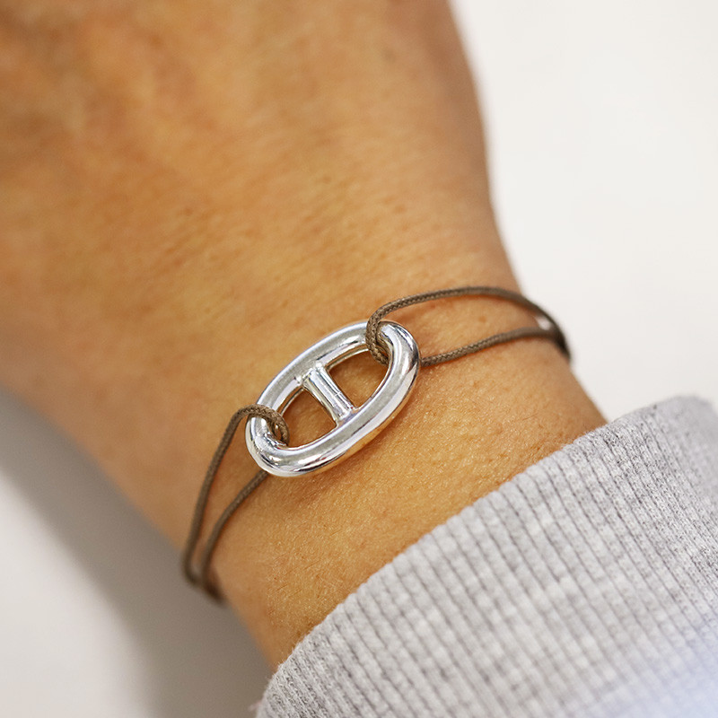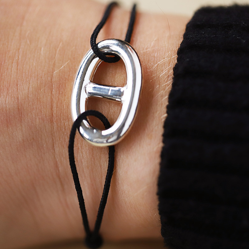 Pour un marin d'eau douce ou un vieux loup de mer, voici ce qui lui faut : le bracelet cordon et sa grosse maille marine en argent signé Clio Blue !
