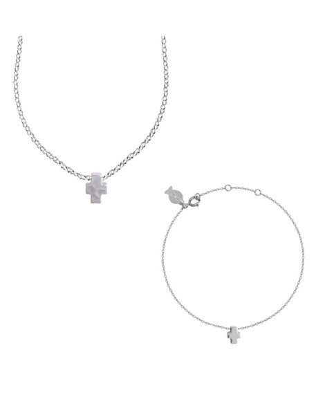 On aime porter une petite croix au quotidien ! Alors, celles en argent de ce duo de choc ne risquent pas de vous déplaire. Une parure en argent, signée Clio Blue, composée d'un collier et d'un bracelet avec une petite croix en argent !
