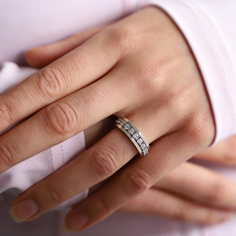 Anneau en argent 925 avec anneau intérieur de zircons mobiles
