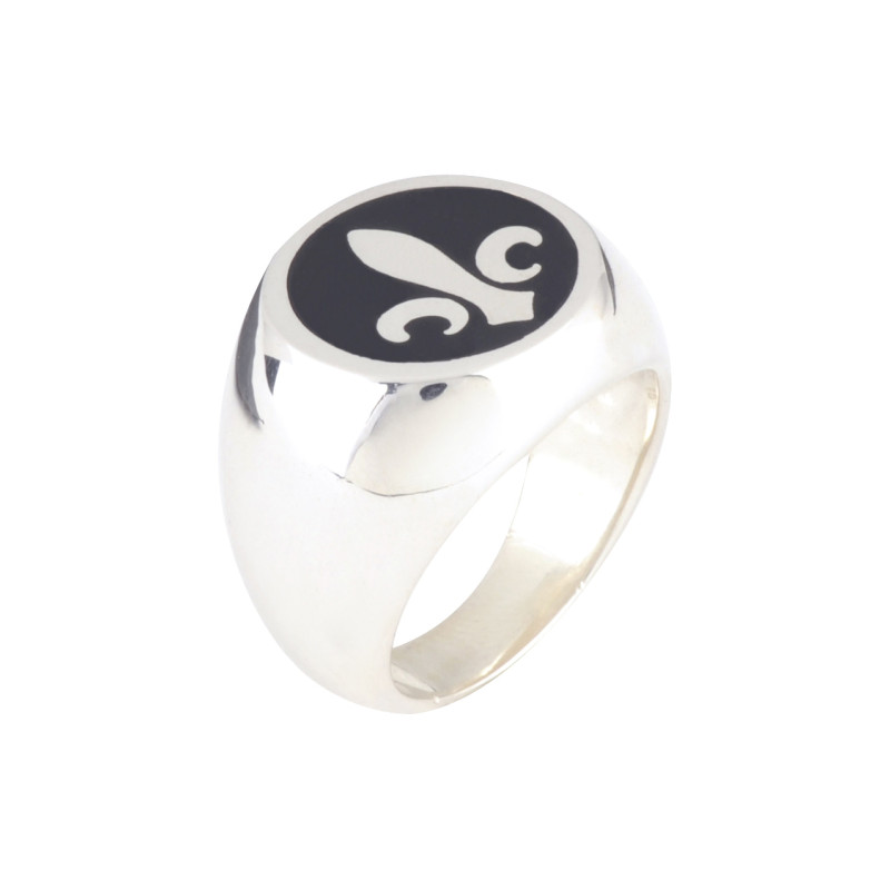 Bague chevalière ovale en argent signée Clio Blue, ornée d’une fleur de lys. Un bijou mixte au style affirmé, idéal à offrir à Noël ou pour un anniversaire.