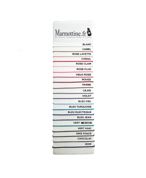 Les cordons que nous utilisons sont de fabrication japonaise (une entorse à notre cher Made In France !), car ils sont d'une incroyable qualité, tant au niveau de la solidité (ils ne s'effilochent pas), qu'au niveau des couleurs qui gardent leur éclat dans le temps. D'ailleurs, ce sont les cordons utilisés par la majorité des créateurs de bijoux pour les bracelets à noeuds coulissants. Enfin, cette collection propose un choix de couleurs extraordinaire, des plus classiques aux plus tendances !