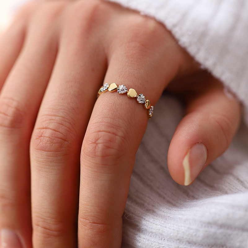 Alternance de cœurs polis et de diamants coeurs brillants (0,017 ct)
