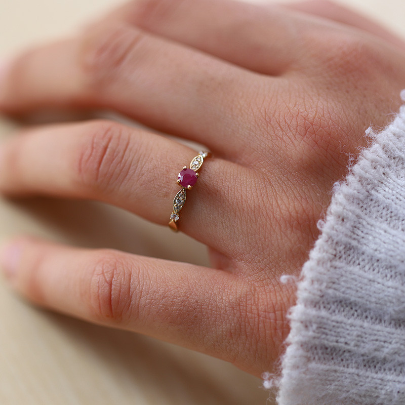 Associez cette bague à un pendentif rubis ou à des boucles d’oreilles en or jaune pour une parure harmonieuse et élégante.