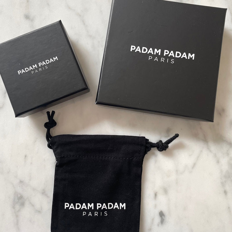 Déclarez votre amour en l'écrivant en lettres d'or sur un bracelet jonc que votre promise portera avec fierté ! Disponible en argent ou plaqué or, ce bracelet message est fabriqué en France dans les ateliers de la marque Padam Padam.