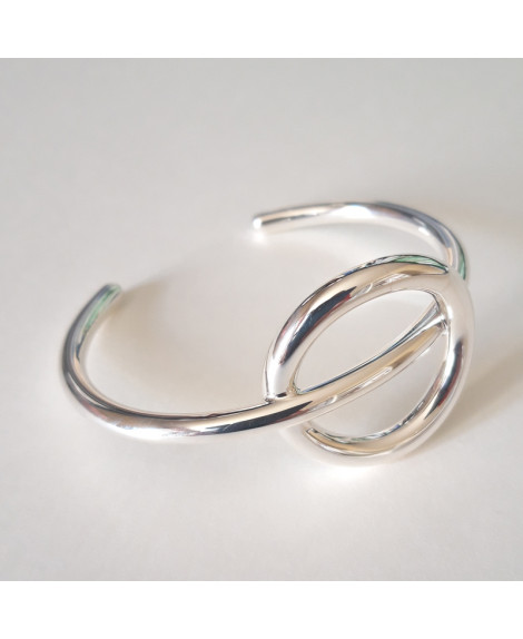 Bracelet spectaculaire en argent massif dont le jonc passe dans un cercle parfait sur le dessus du poignet pour un effet manchette très tendance. Un modèle racé qui ne laisse pas indifférent.